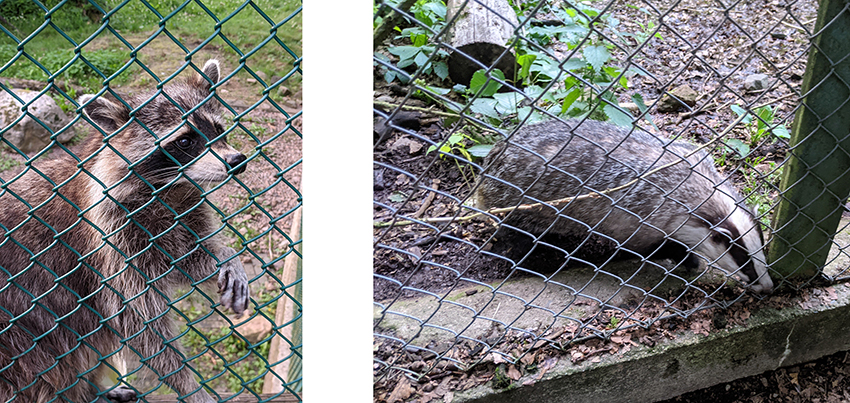 We were separated into two groups and led around by a guide, who handed out food (and plastic gloves for hygiene) and told us about the various animals we visited. We had only ever seen the raccoons asleep, so it was fantastic to be able to handfeed them through the bars – and we’d never seen the wolves or the badgers at all!