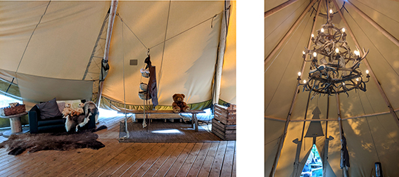 The centre tent is huge, with a striking antler chandelier, and a variety of toys and books and places to sit. You could also help yourself to soft drinks and marshmallows for roasting over the fire.