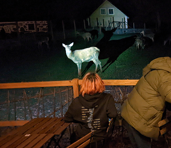 You also don’t need to cook your own dinner at Wild Lodges – instead we gathered in the restaurant for a tasty buffet meal. Then it was time to visit the animals. Since this was höstlov rather than sommarlov, it was much darker much earlier, but also very cosy.