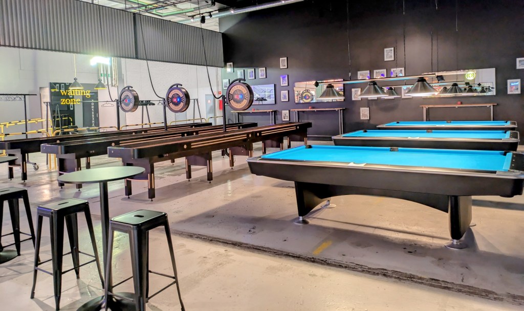 You have to walk quite far into Fabriken before you come to the trampoline and soft play section, through the billiard and shuffleboard area and past the brasserie. You’ll see the laser tag area straight ahead first, and from there you take a left to the trampolines.