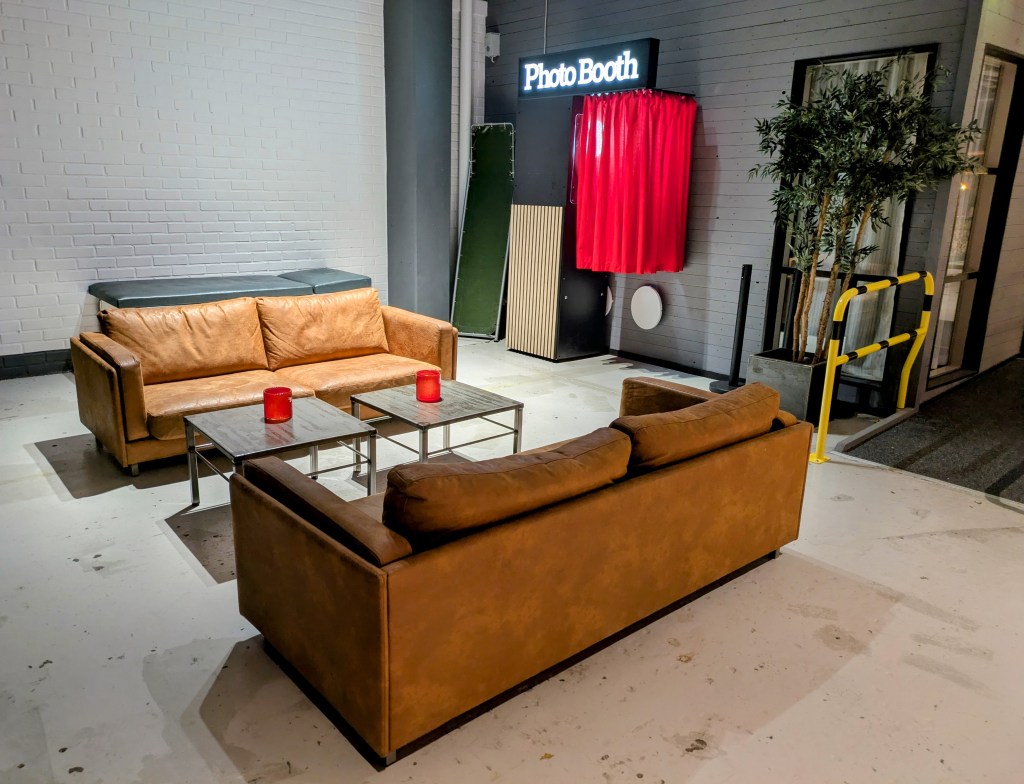 After a couple of hours and bouncing and some drinks, it was time for our laser tag session. At this point I decamped to the comfy sofas opposite the brasserie (and found a power outlet by the photo booth) while the boys went in to play. They had a good time but said that the area was smaller (and louder) than Laser Dome in Malmö – but a good option if you’re local to Landskrona.